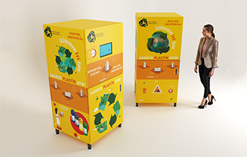 Geri dönüşüm farkındalığının aktarılacağı Geri dönüşüm otomatları.